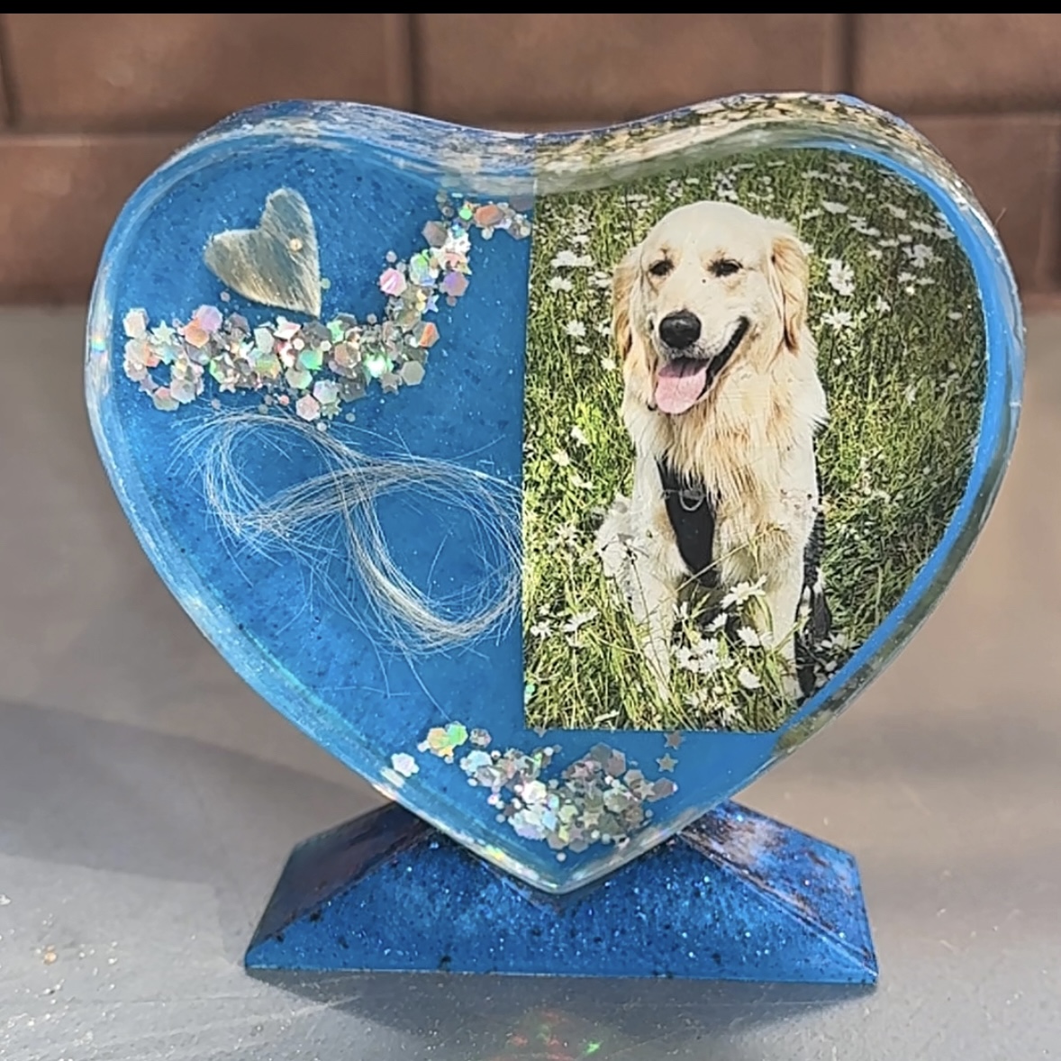 Du schickst mir Haar, Fell oder Mähne deines Seelentieres. Ich arbeite dieses Material sorgfältig in hochwertiges Epoxidharz ein und versiegele es mit UV-resistentem Harz. So entsteht ein klares, dauerhaft geschütztes Herz, das ein echtes Stück Verbindung in sich trägt.