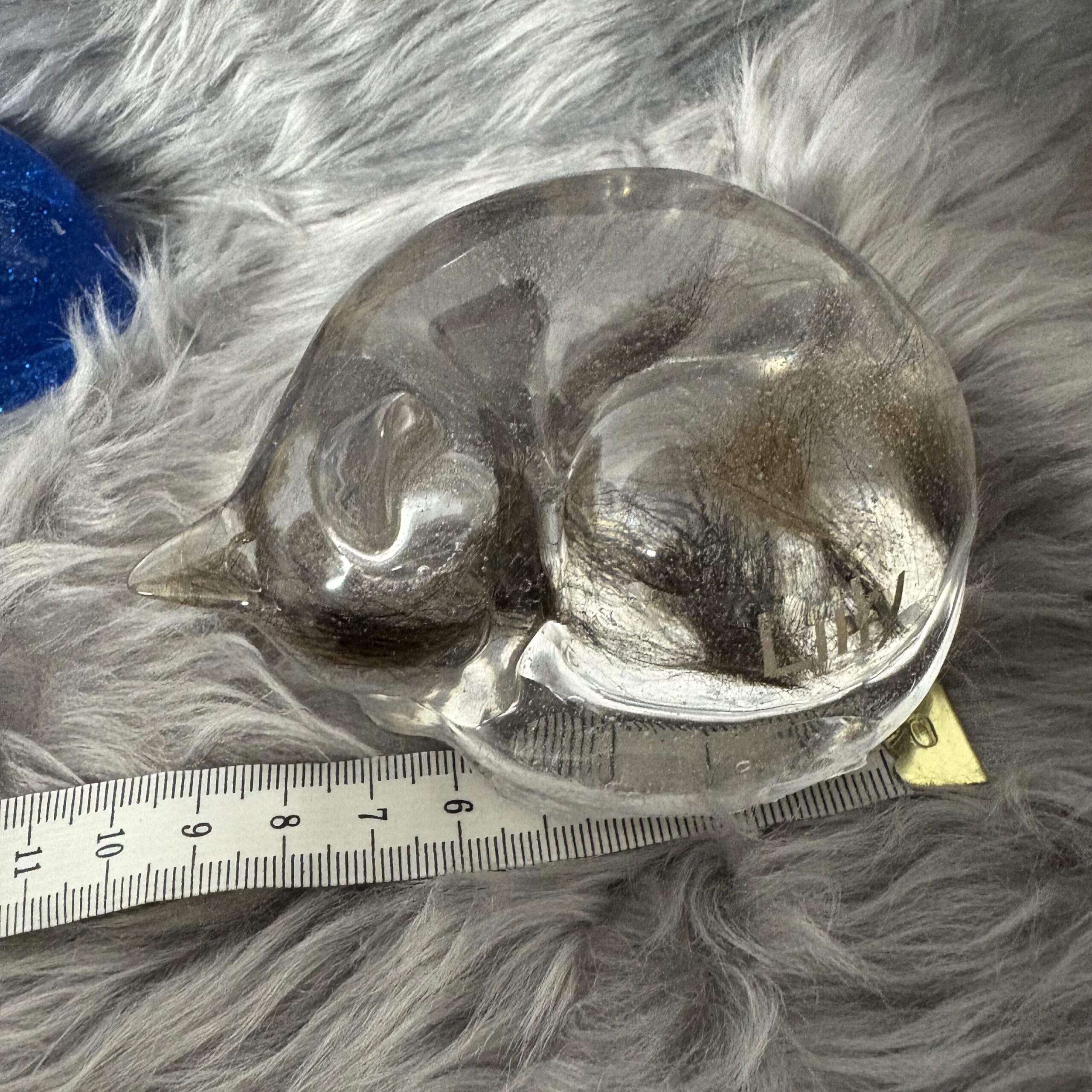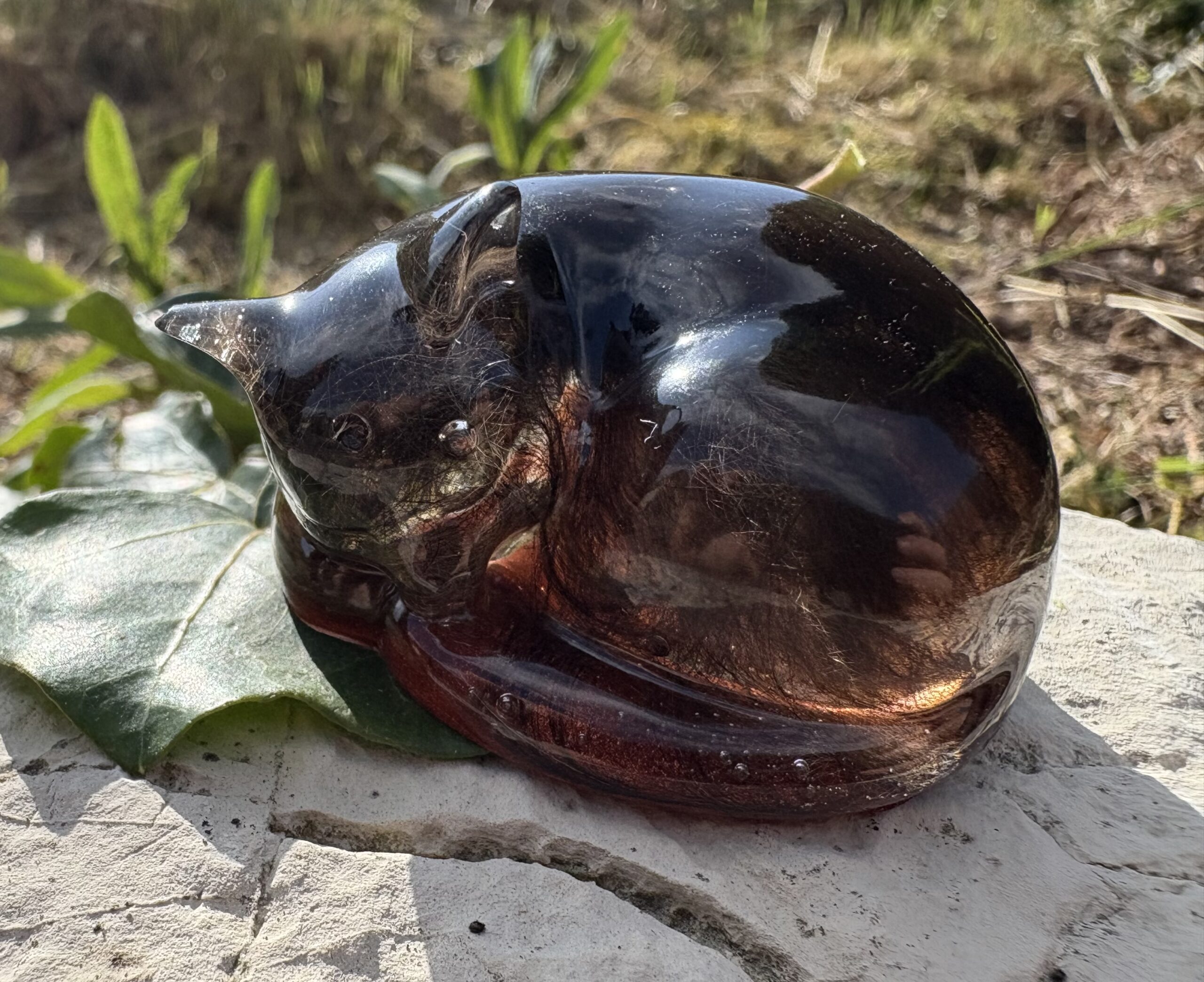 Diese Katzenform ist ein stilles Erinnerungsstück für alle, die wissen, dass Liebe nicht laut sein muss. In hochwertiges Epoxidharz arbeite ich auf Wunsch echtes Fell deiner Katze ein oder fertige das Stück ganz pur mit Farbe.